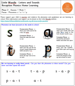If you’re unsure on how to pronounce the phonemes, there are some really useful videos on the Little Wandle parent page.