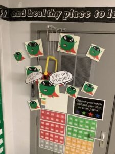 On Wednesday, the Evil Pea was up to his mischievous tricks once again! He had taped the super veggies to the window and left us a message saying, “Mwah ha ha! You can’t catch me!”