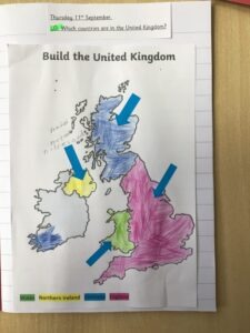 This week in our topic lessons the Year 1s have been learning about the four countries in the UK. They worked really hard on identifying and colouring the four countries and the borders around each one. They’ve had a really good start to the year with a lot of them showing off their geography skills.