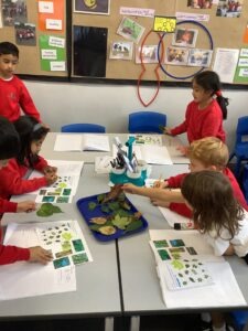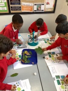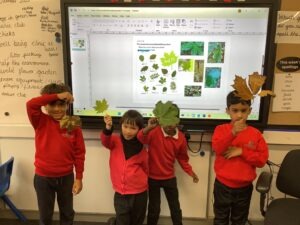 Back in class, we examined our leaves carefully and used an identification guide to find out which trees they came from. We discovered a wonderful variety of trees in the park, including oak, birch, sycamore, beech, and holly.
