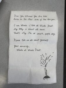 We’ve just finished our class novel, Yours Sincerely, Giraffe — and to our surprise, we received a very special letter in the post! It was from Whale, one of the characters in the story!