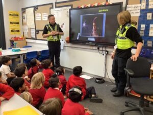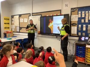 Recently, our local PCSOs, Sian and Matt, came to talk to us about staying safe at this time of year around bonfire night.