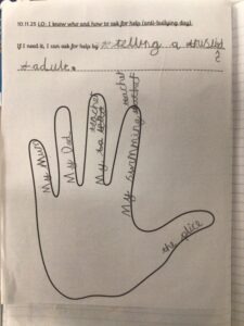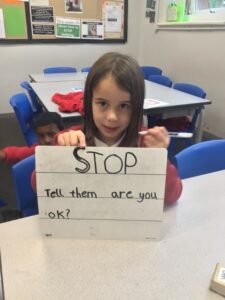 Our school definition helped us understand the different types of bullying – physical (hurting someone’s body), emotional (hurting someone’s feelings) or cyber bullying (online).