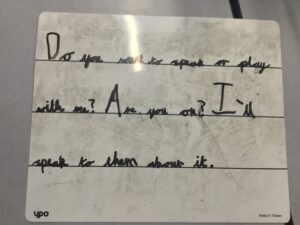 asking a lunchtime helper to help.