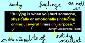 We explored our school definition of bullying, created by our junior leaders, by looking at what some of the words meant.