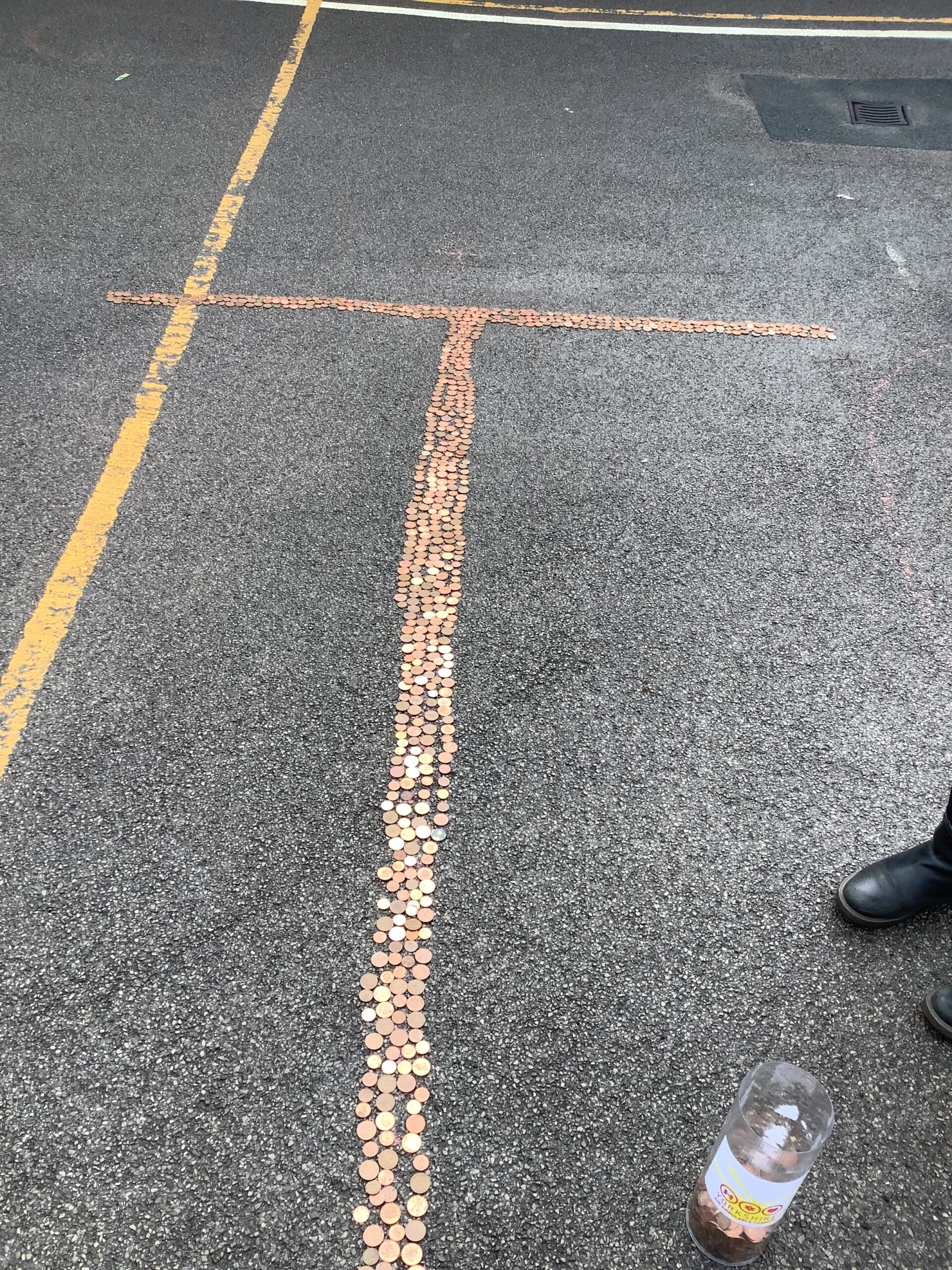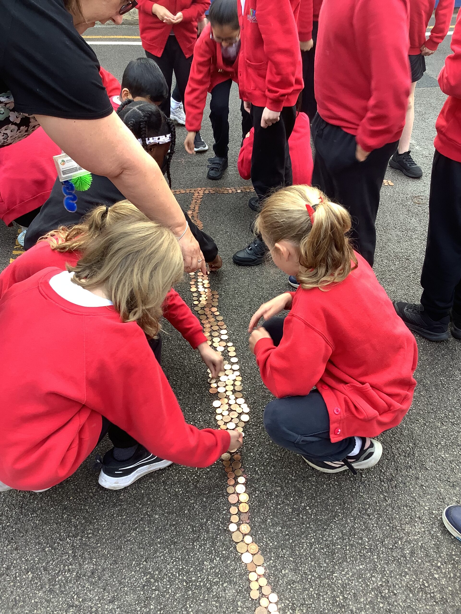 On Friday, all the classes ventured into the playground to use their pennies to create a huge ‘Moortown’ penny trail. We had so many 1ps and 2ps that we ended up doubling and tripling up our coins.