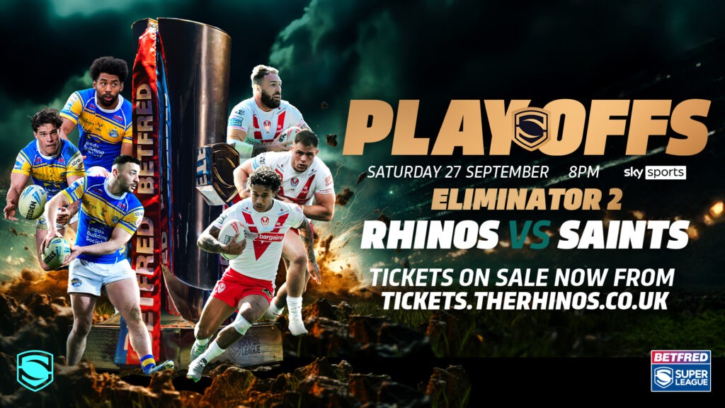 Following the conclusion of the regular season Leeds Rhinos will take on St Helens in a mouth-watering elimination play off at AMT Headingley Stadium on Saturday 27 September 2025, kicking off at 8pm.