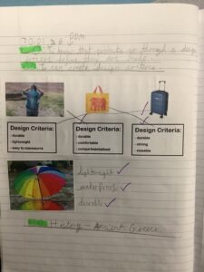 We looked back over what makes a good design criteria and came up with our own design criteria for an umbrella.