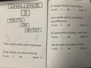 We watched a BBC live lesson which had a range of challenges to help us think about how to stop bullying.