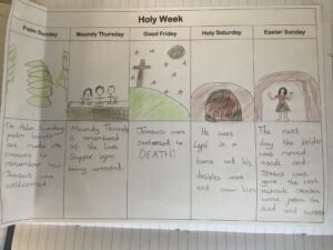 Finally, we looked at Christian festivals, focussing on Holy Week. This is the most important week for Christians. We completed a table describing each day and which significant events happened on each day.