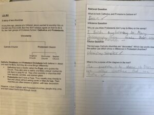 Afterwards, we discussed different denominations of Christianity focussing particularly on Catholics and Protestants. We completed a RIC and was able to confidently discuss the differences.