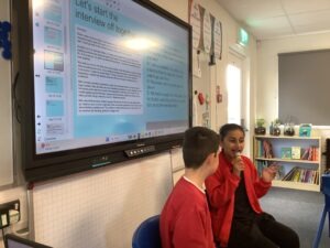 In today’s lesson, the children read a diary entry from a survivor of an avalanche. The put themselves in the shoes of the character and created a TV interview.
