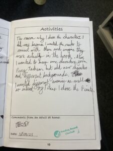 - Every Friday, I chose an activity for the whole class to complete in their reading record. More information on these activities is found inside the record.