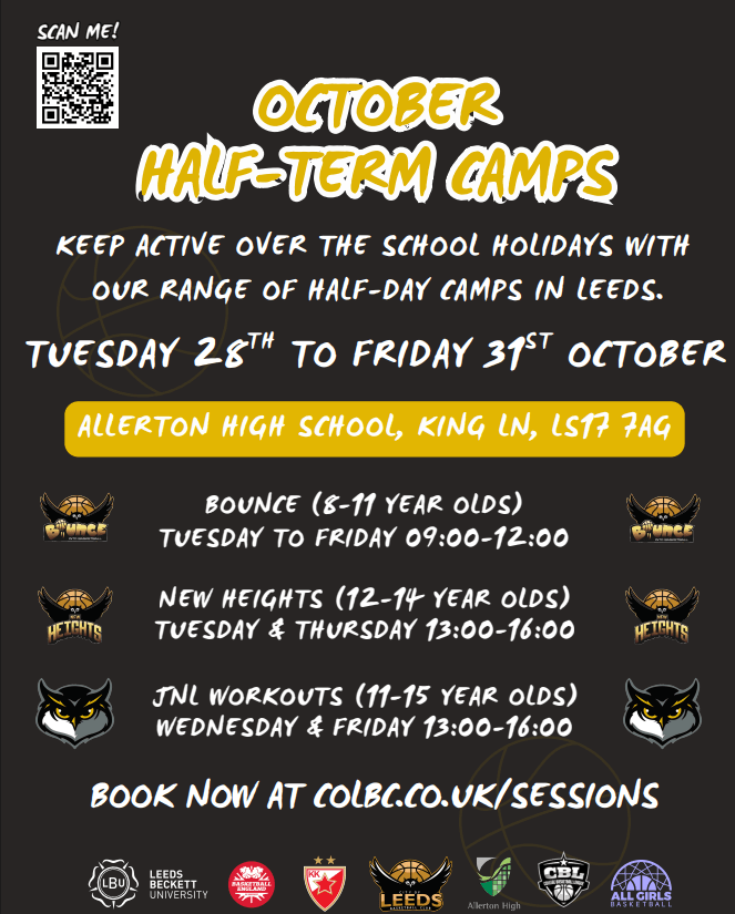 As a partner school of City of Leeds Basketball Club and one of our after-school club providers, we’re pleased to share details of their half term camps held locally at Allerton High School.