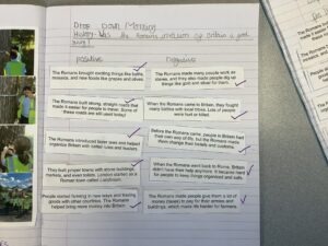 We then had a class debate – for or against the Roman invasion. This allowed the children to practise their oracy skills. They projected their voices, used specific vocabulary to the topic and changed their tone.