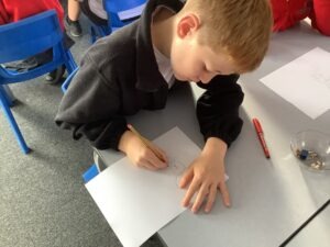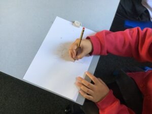 We started off the day by taking part in a workshop with a real artist! We investigated patterns, textures and shape. The children did some artwork without looking at the page; they had to put their sketchbook on their heads. They also created a collaborative piece where they had one minute to draw and then had to move on to someone else’s sketchbook to draw for another minute.