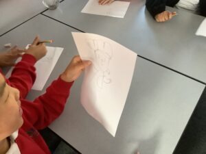 We watched a tutorial and then had a go at drawing our very own Bunny. For the rest of the lesson, the children created their own comic books.
