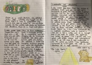 Year 6 have been writing about a fictional city. They were able to create a city of their choice using a city in real life as inspiration. They needed to include different sentence starters, geographical vocabulary and relative clauses.