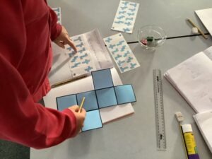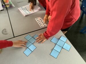 In our nets lesson, the children explored different nets to see that when folded if they would make a cube or not.