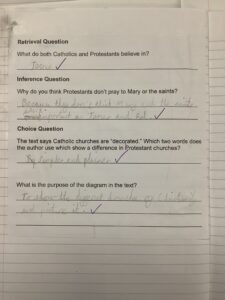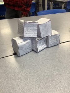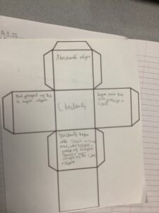 In our first session, the children created a fact file about Christianity. This fact file was different though as we linked our learning to maths because we used a net of a cube.