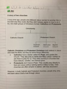 In our second session, we learnt about the different denominations of Christianity. Denominations are different groups within Christianity. The different denominations have different ideas about how to worship God.