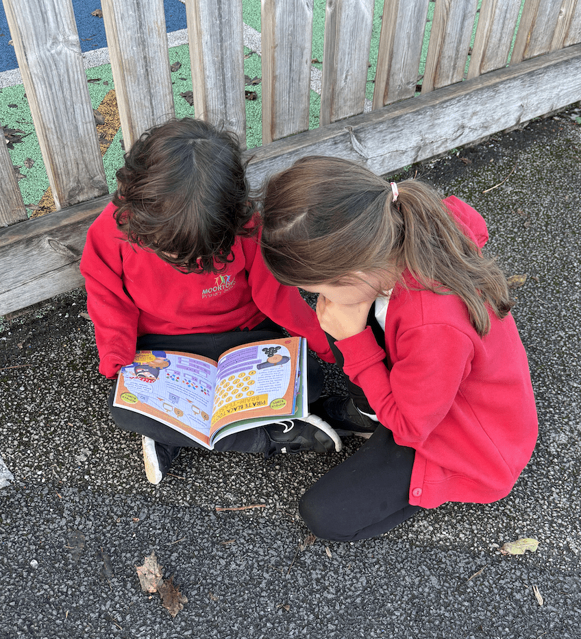These two Year 1 friends love reading. In fact, they love it so much that they sometimes even take their book outside to share at lunchtime!